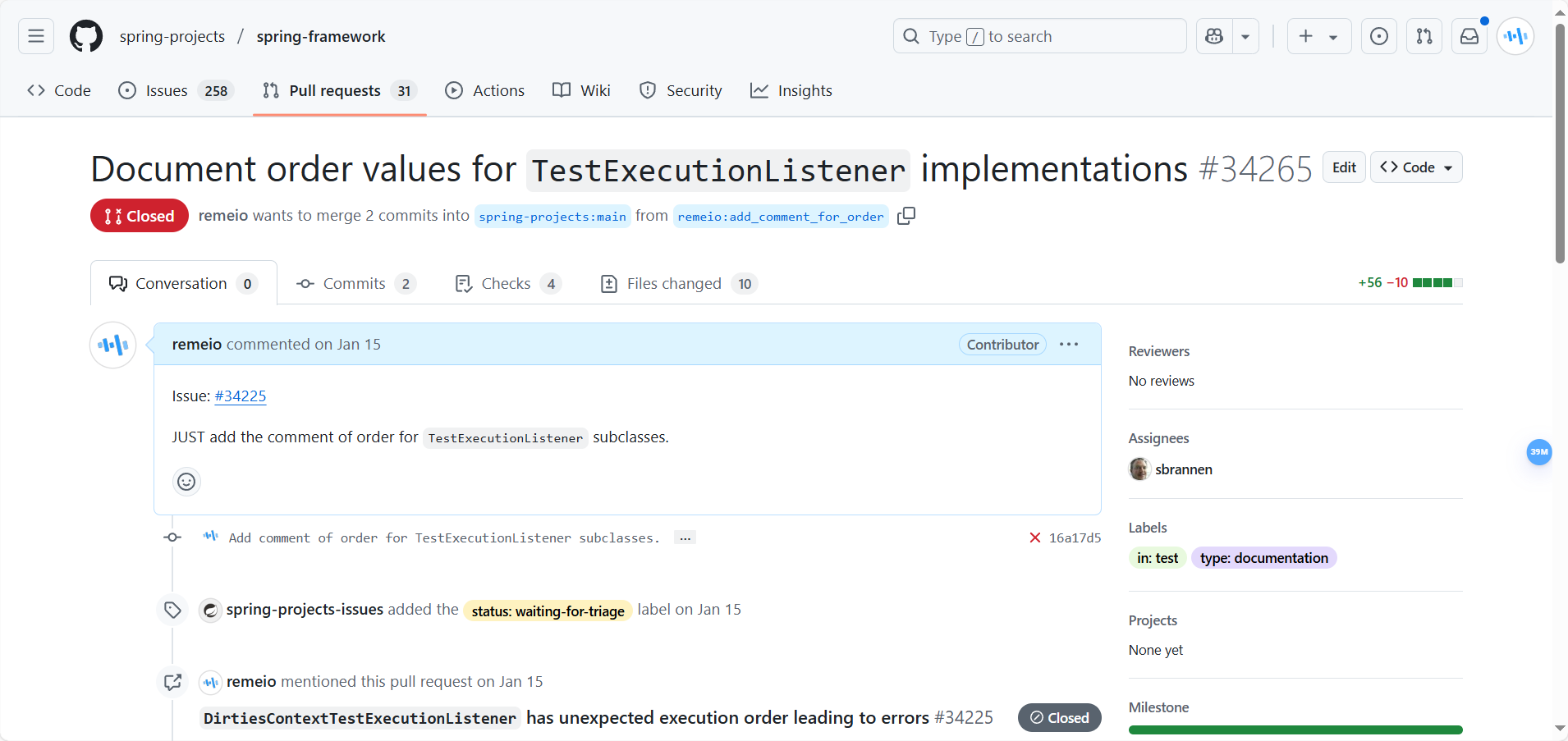 等待Spring Framework的Member进行代码评审及反馈,顺利的话,代码将会被合并,便可以成为贡献者了。